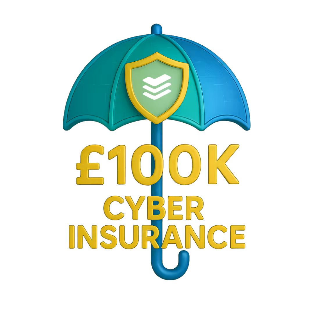All eligible CyberSmart customers receive £25,000 of free Cyber Essentials insurance, with options to upgrade cover directly through our trusted insurance broker.